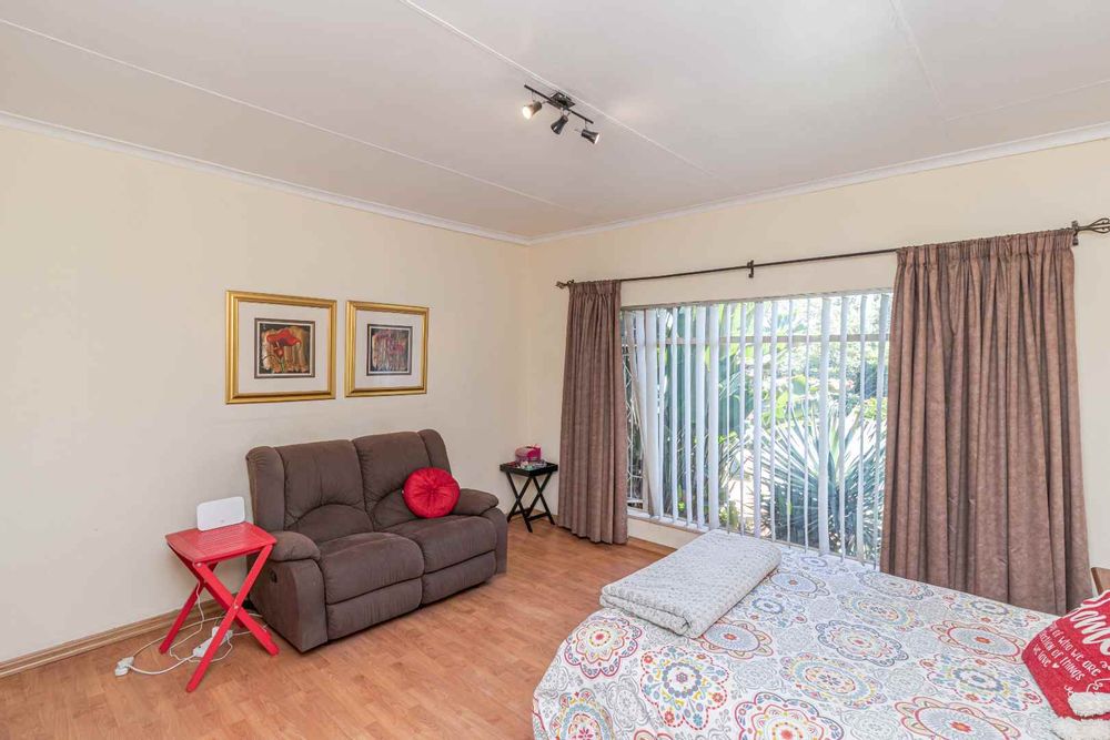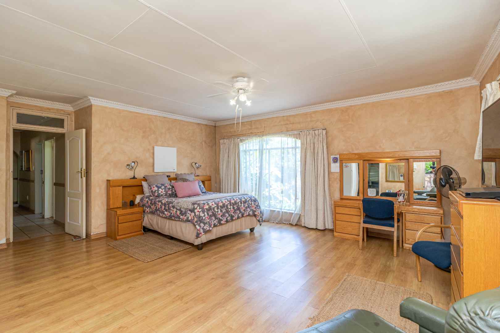 The home features four generously sized bedrooms with neat laminated wood flooring. The expansive main bedroom offers ample cupboard space and includes a cozy pajama lounge with direct access to the private pool area. The en-suite bathroom is elegantly designed, featuring a bath, shower, and double basin.