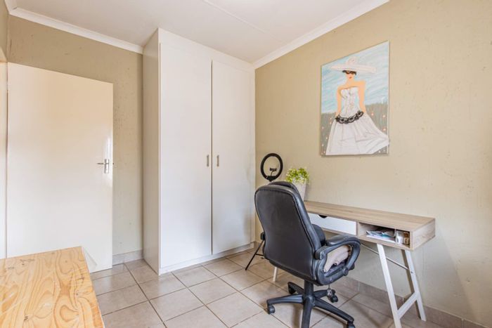 Cozy two-bedroom unit with full bathroom, open-plan lounge, kitchen, double garage, spacious garden, pet-friendly, and potential for investment.