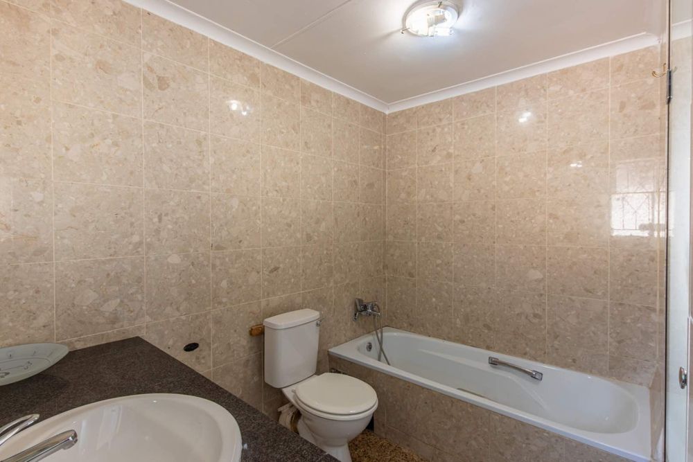 The house features a standard open-plan design, seamlessly connecting the kitchen, dining room, and TV lounge. This welcoming space extends to a patio equipped with a built-in braai, perfect for entertaining or relaxing. The patio opens up to a vast garden, boasting a rock pool and jungle gym, providing ample room for children and pets to enjoy the outdoors.